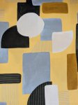 Abstract geometric print featuring blocks of mustard yellow, light blue, and dark green with linear details throughout. Printed on lightweight 100% cotton broadcloth with a smooth hand and crisp finish. Suitable for dresses, tops, skirts, and shirting.