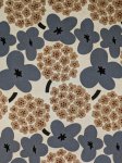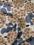 Clustered floral print on a natural background featuring dusty blue blossoms and warm taupe accents. Muted contrast with a modern feel. Printed on an 85% cotton, 15% linen blend with light structure. Suitable for dresses, skirts, tops, and lightweight jackets.